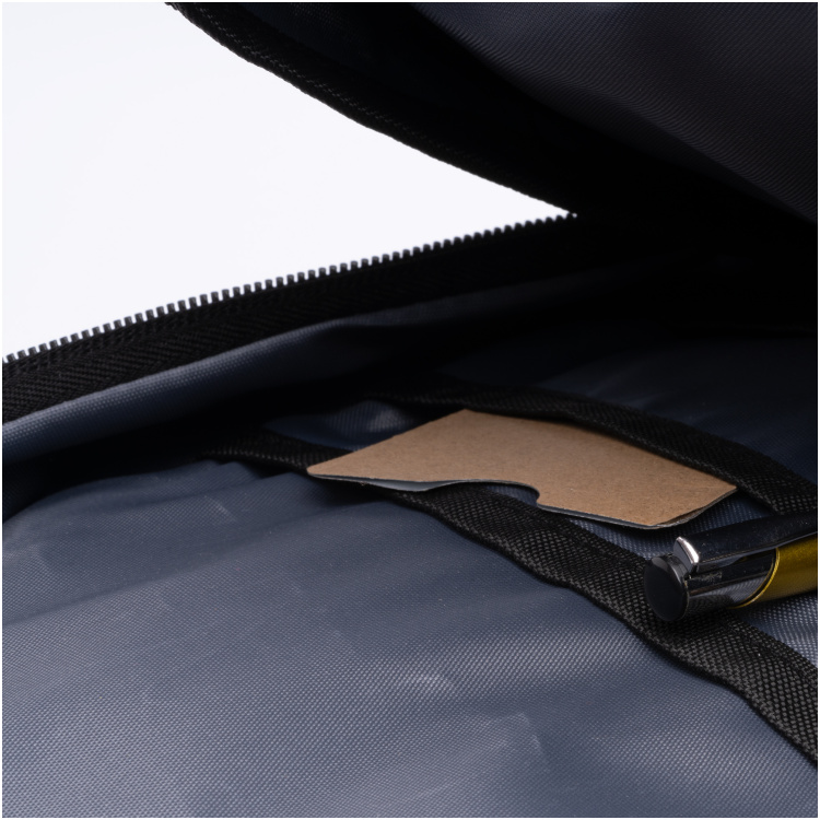 • „Executive“ kuprinė iš RPET 300D perdirbto poliesterio su energingu dizainu yra puikus pasirinkimas profesionalams, norintiems suderinti stilių, funkcionalumą ir tvarumą.