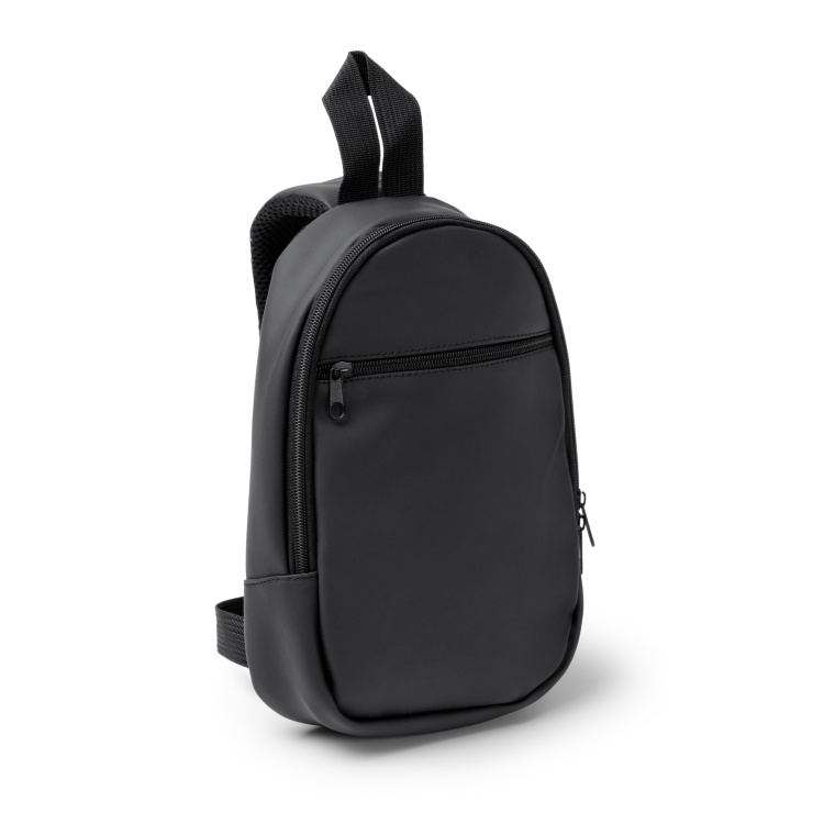 • Dirbtinės odos nedidelė kuprinė su viena petneša.