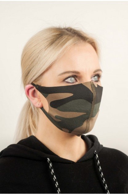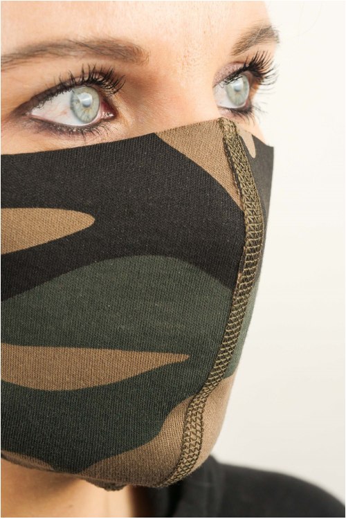 • Stilinga komofliažo dizaino kaukė ant veido.