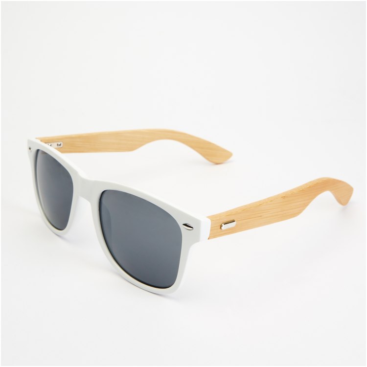 • Tamsinti saulės akiniai su natūralaus bambuko kojelėmis.