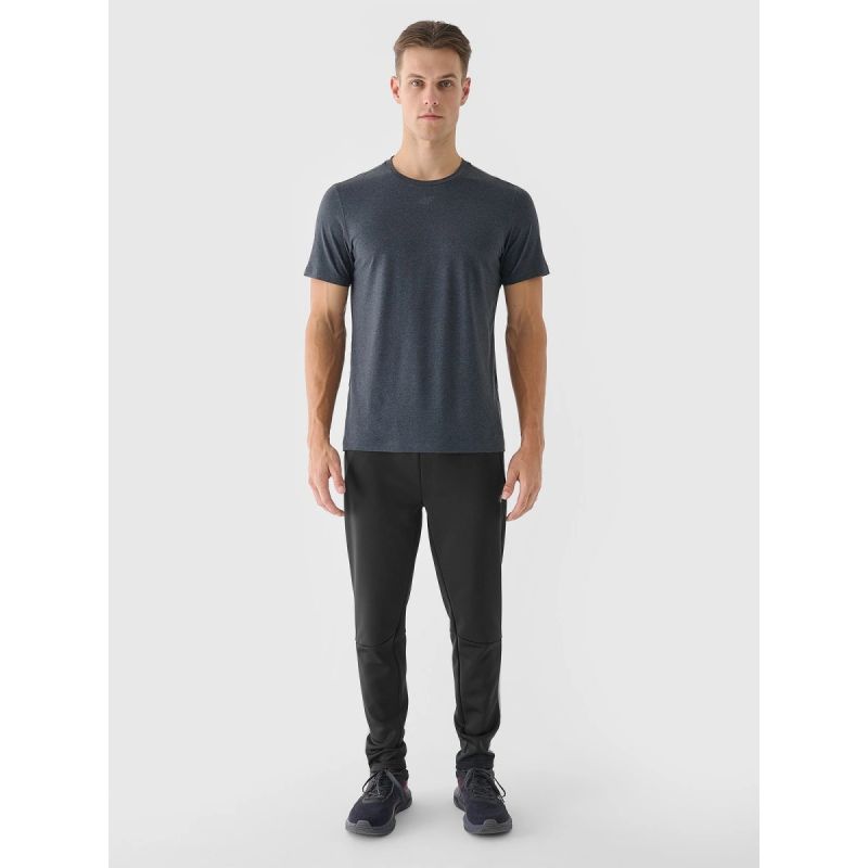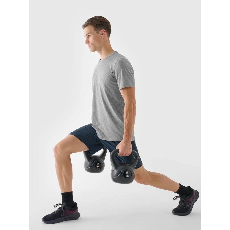Šie vyriški greitai džiūstantys sportiniai marškinėliai skirti intensyvioms treniruotėms ir kasdienei fizinei veiklai. Pagaminti iš patvarios sintetinės medžiagos , juos lengva prižiūrėti ir jie išlaiko formą net ir dažnai dėvint. 10 % elastano kiekis suteikia marškinėlių tamprumo ir patogiai priglunda prie kūno, nevaržo judesių. Megztas audinys su lygia struktūra iš abiejų pusių yra minkštas liesti, tačiau patvarus. Quick – džiovinantys 4FDry technologijos pluoštai efektyviai sugeria drėgmę nuo kūno, padėdami išlikti sausiems ir jaustis patogiai net ir intensyvių treniruočių metu. Įprastas kirpimas ir klasikinė apvali iškirptė suteikia marškinėliams universalumo, todėl jie tinka tiek sporto salei, tiek kasdienai sportinei aprangai.