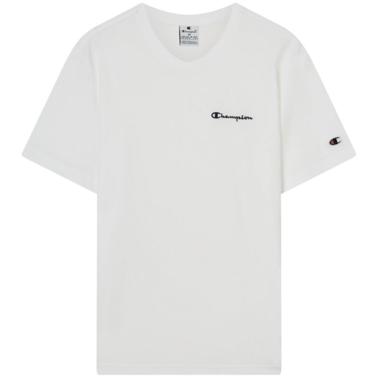Champion SS marškinėliai vyrams, balti 221798 WW001. Šie Champion vyriški marškinėliai puikiai tinka kasdieniam dėvėjimui. Standartinio kirpimo. Mažas Champion logotipas ant krūtinės ir kairės rankovės. Briaunota apvali apykaklė. Minkštas audinys. Medžiaga: 100 % medvilnė.