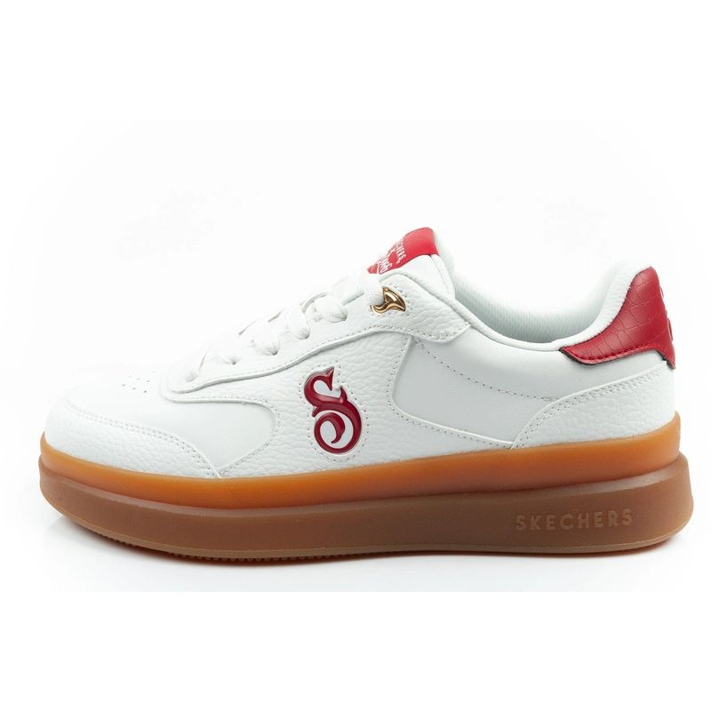 Skechers „Courtside-Cali Dudez“ balti/raudoni bateliai [251200/WRD] – stilingi sportbačiai, įkvėpti klasikinio krepšinio stiliaus ir Kalifornijos stiliaus.