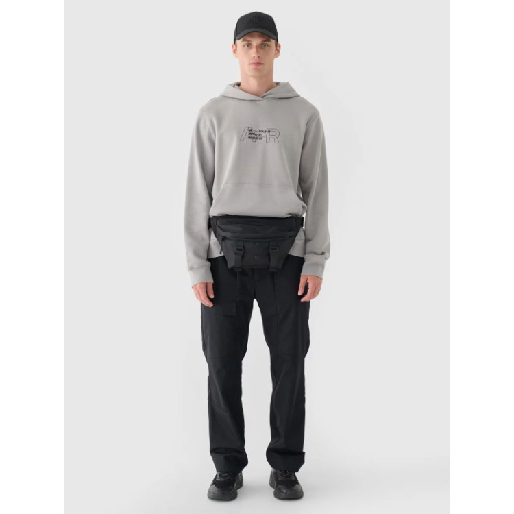 Šis vyriškas atviras džemperis pagamintas iš 78 % medvilnės, todėl yra minkštas, patvarus ir malonus liesti. Poliesterio (22 %) priedas užtikrina, kad audinys išliktų savo forma ir būtų atsparus dilimui daugelį sezonų. Šukuotas vidus suteikia papildomos šilumos, todėl puikiai tinka šaltesnėms dienoms. Džemperis turi įmontuotą gobtuvą ties iškirpte. Elastingi rankogaliai su raišteliais. Priekyje yra matomas užrašas „All-Round Athletic Apparel“ . Priekyje yra atvira kengūros kišenė. Džemperis užmaunamas per galvą. Nuleistos rankovės suteikia laisvą kirpimą. Platus, briaunotas apačia.