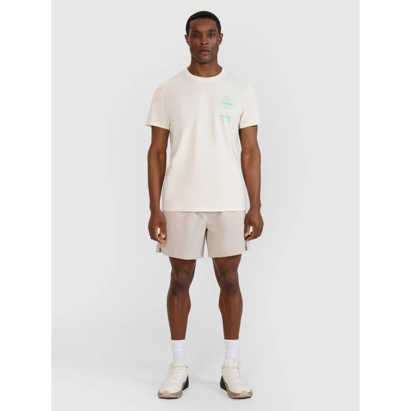 Stilingas spaudinys priekyje – užrašas „All-round Athletic Apparel x Performance Beyond Boundaries“ pabrėžia sportišką marškinėlių charakterį.