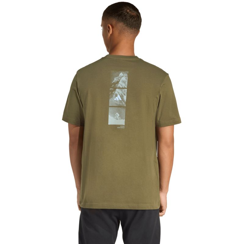 Vyriški „adidas Outdoor Mountain Biking Graphic“ marškinėliai, alyvuogių spalvos KB2537. Šie vyriški „Adidas“ marškinėliai puikiai tinka kasdieniam dėvėjimui. Standartinio kirpimo. Trumpos rankovės. Minkštas, patogus audinys. Guminis trafaretinis atspaudas nugaroje. Mažas logotipas priekyje. Medžiaga: 100 % medvilnė.