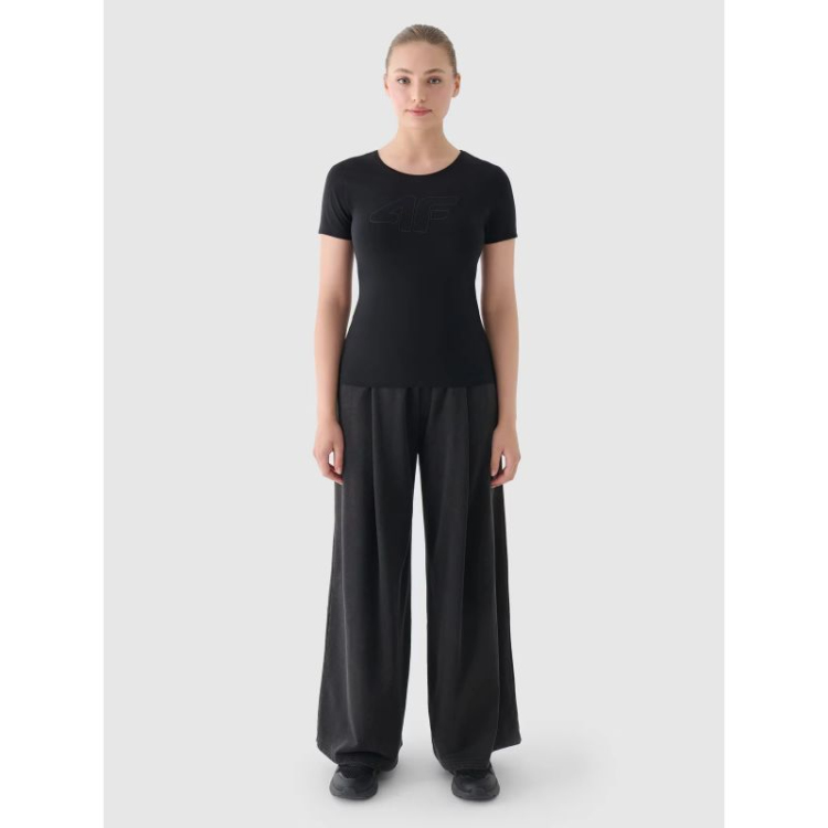 Šie moteriški marginti marškinėliai , sveriantys 180 g/m², yra minkšti liesti ir gerai krenta. Jie nėra permatomi ir yra patvarūs bei patogūs dėvėti ištisus metus. 4F moteriški marškinėliai pagaminti iš 95 % medvilnės, todėl yra minkšti, patvarūs ir malonūs liesti. Dėl 5 % elastano kiekio jie yra tamprūs ir patogiai priglunda. Apvali iškirptė papuošta subtiliu briaunotu apdaila. Priekyje matomas užrašas „4F“.