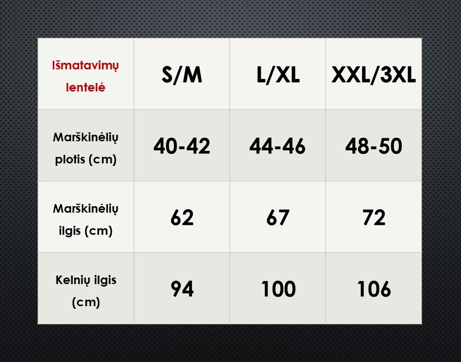 Ši prekė yra reguliaraus dydžio ir dydžiai atitinka. Būtent dėl šios priežasties net 99.3% visų pirkėjų pataiko su dydžiu iš pirmo karto. Net jei taip atsitiktų, kad prekės dydis pasirodys netinkamas - galėsite nemokamai pasikeisti į kitą dydį arba atgauti pinigus atgal į sąskaitą. Tad jokios rizikos Jums nėra.