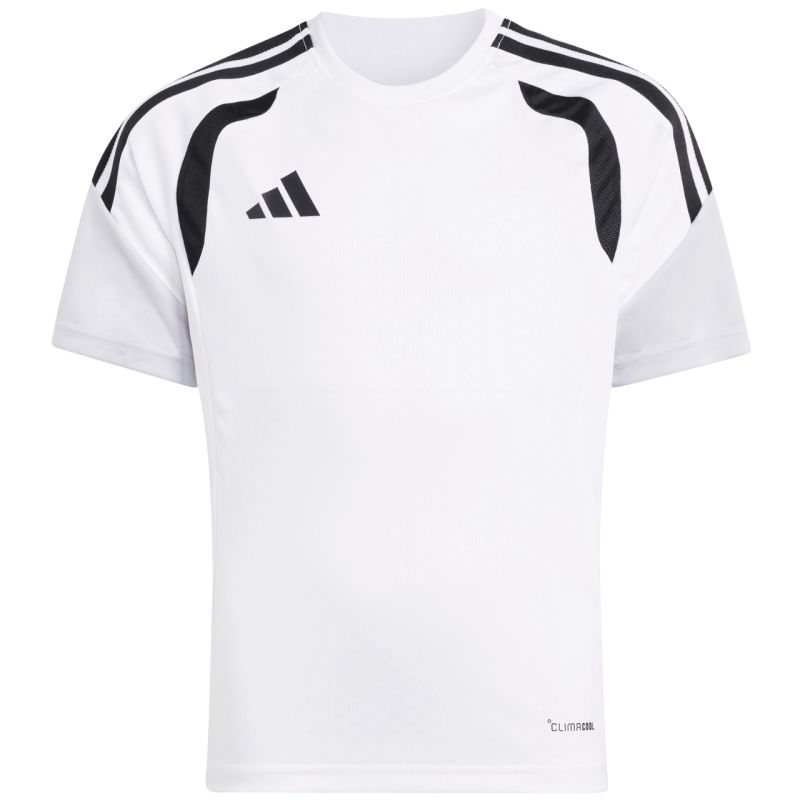 „Adidas Tiro 26“ varžybų treniruočių marškinėliai vaikams, balti ir juodi, KA7603. Šie „Adidas“ marškinėliai puikiai tinka treniruotėms ir lemiamoms rungtynėms. Jie pasižymi įprastu kirpimu. Tinklinės detalės ant krūtinės. „Climacool“ technologija sugeria ir išgarina prakaitą. Perdirbti pluoštai. Subtilus logotipas. Juostelės ant rankovių. Medžiaga: 100 % perdirbto poliesterio.