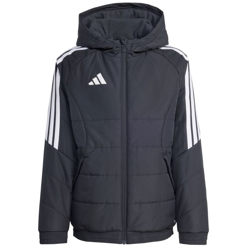 „adidas Tiro 26“ žieminė striukė vaikams, juoda, KA5319. Ši „Adidas“ vaikiška striukė iš „Tiro“ futbolo linijos puikiai tinka ir kasdieniam dėvėjimui. Sintetinis užpildas, tolygiai paskirstytas plačiose, horizontaliose detalėse, padeda palaikyti optimalią kūno temperatūrą. Tradicinis kirpimas. Užtrauktukas per visą ilgį. Šoninės kišenės su užtrauktukais. Elastingi rankogaliai ir apačia. Fiksuotas, nereguliuojamas gobtuvas ant aukštos stovimos apykaklės. Juostelės ant rankovių. Subtilus logotipas priekyje. „Climawarm“ technologija. Vandeniui atsparios išorinio sluoksnio savybės. Neperpučiamas audinys. Išorinė medžiaga: 100 % perdirbto poliesterio. Užpildas: 100 % perdirbto poliesterio.