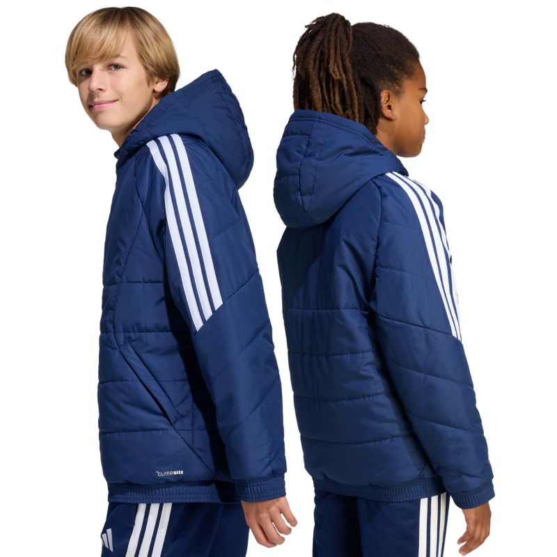 „Adidas Tiro 26“ žieminė striukė vaikams, tamsiai mėlyna, KA8026. Ši „Adidas“ vaikiška striukė iš „Tiro“ futbolo linijos puikiai tinka ir kasdieniam dėvėjimui. Sintetinis užpildas, tolygiai paskirstytas plačiose, horizontaliose detalėse, padeda palaikyti optimalią kūno temperatūrą. Tradicinis kirpimas. Užtrauktukas per visą ilgį. Šoninės kišenės su užtrauktukais. Elastingi rankogaliai ir apačia. Fiksuotas, nereguliuojamas gobtuvas ant aukštos stovimos apykaklės. Juostelės ant rankovių. Subtilus logotipas priekyje. „Climawarm“ technologija. Vandeniui atsparios išorinio sluoksnio savybės. Neperpučiamas audinys. Išorinė medžiaga: 100 % perdirbto poliesterio. Užpildas: 100 % perdirbto poliesterio.