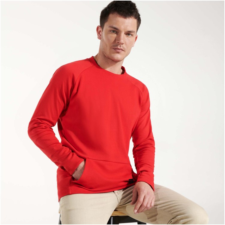 • Plonesnio audinio džemperis be pašiltinimo su reglano rankovėmis."Kengūros" stiliaus kišenės.